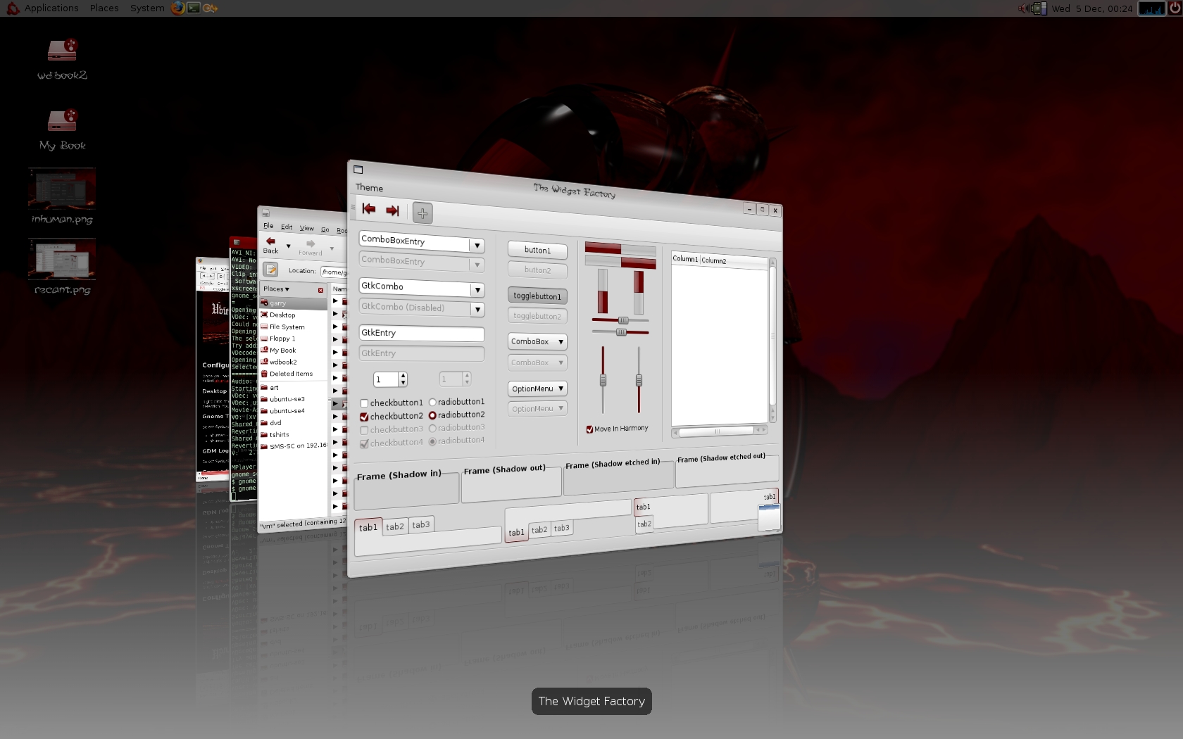 Dark and light Gnome themes with a blood-soaked feel.